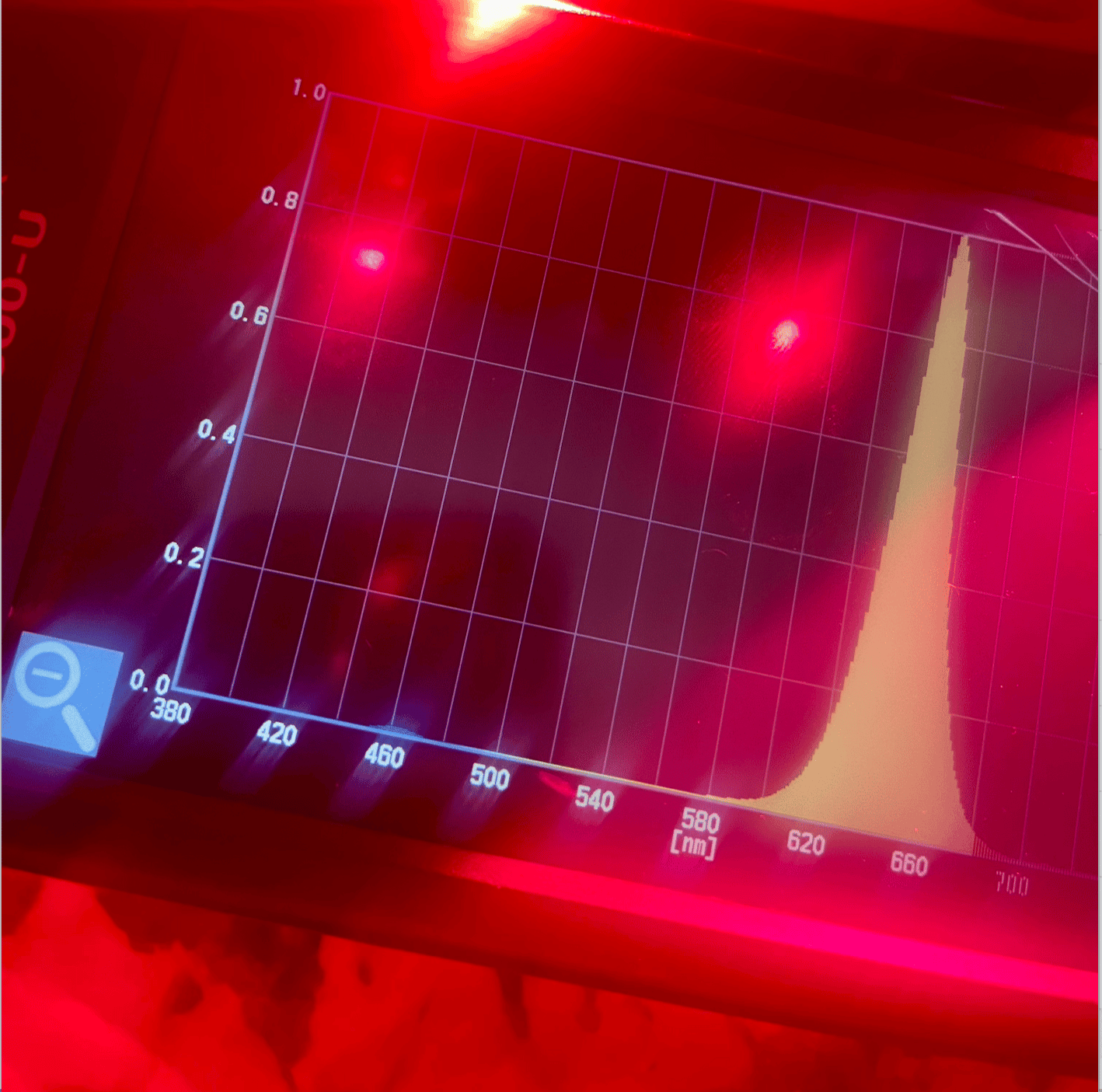 As you can see - they contain no blue/green, and when I measure with my lux meter - this one is only two lux (approximately one foot away).