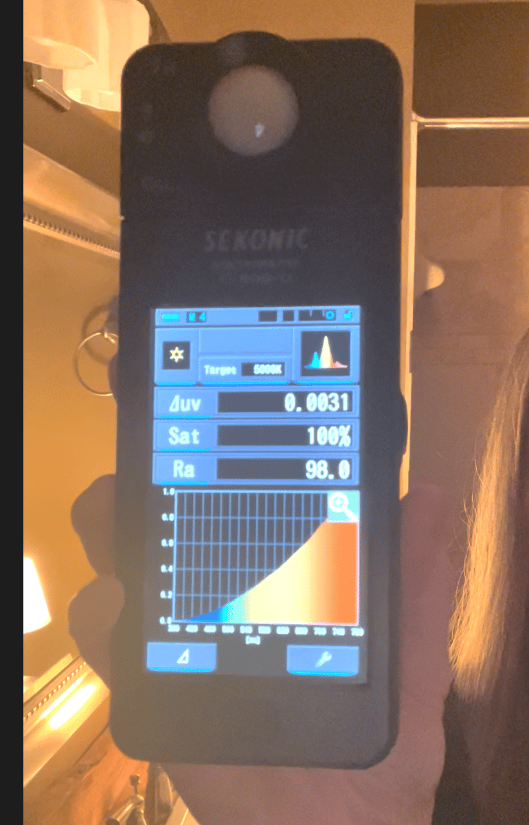 And just for your reference - this is what a standard LED bulb - TV screen and phone screen looks like when measured (lux will always vary based on distance & kelvin) β¬οΈ