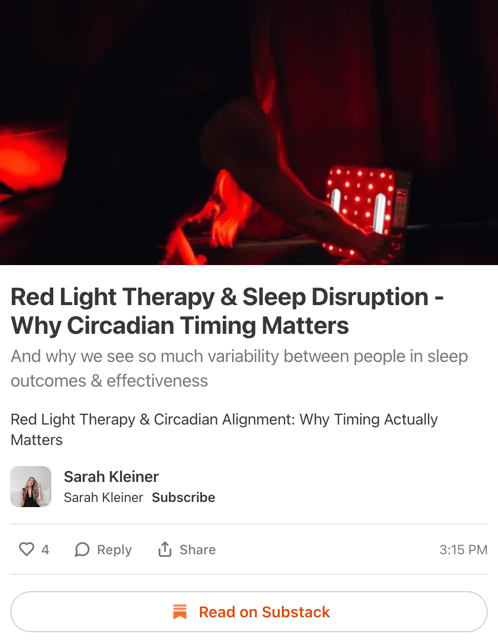 Hi Reader Earlier this week, I shared a short clip on instagram from this week's podcast conversation about peptides - red light - supplements - HRT & why some of these therapies (especially anything injectable) - could go awry in the wrong person....potentially even being carcinogenic. In that clip, when I asked about peptides and cancer risk, my guest opened by discussing NAD (which is not actually a peptide 😅...and we both know that), and the conversation continued from there into injectable therapies - including GLP-1's more broadly. In the full conversation, the context is clear (keep reading for the links to listen or watch) 🚨 In a winter slump? Flash sale on 60 Day Access to Quantum Nutrition (click here) 🌞 Brand new - Fertility Signals Bundle - Everything I wish I had when I was trying to get pregnant in my 40's! New here? Free Product Guide - $7 Cortisol Course & MyCircadianApp Free trial with code SARAHK In that 30 second short clip, nuance didn’t land - and I got a few messages with choice words from people claiming I don't understand biology. My nervous system is still recovering - so I hope you will listen to the full episode with the understanding that we both indeed know that NAD is not a peptide 😂. This is exactly why I continue to emphasize long-form conversations & education. Biology isn’t binary, and therapies like peptides, hormone therapy, NAD, red light, and supplements like glutathione can support some people while being inappropriate for others, depending on context.......and we can't keep this type of information in soundbites. Click here - or on the photo above for Youtube - Click here for Spotify & Click here for Apple Yesterday - also wrote a short piece on Substack expanding on this idea, specifically around genetic variability - timing and red light therapy, inspired by that same conversation. (Click here or on the photo below to read it) As you'll learn in the article - red light therapy is a signal, and your mitochondria respond to that signal differently depending on timing, delivery, and your overall terrain. This same timing & context principle doesn’t just apply to light and sleep - it applies to anything that interacts with mitochondrial signaling. nother greatexample of thisis methylene blue T There’s been a lot of debate around it lately, but in practice the response is highly individual. I’ve seen it be genuinely supportive for some clients who were struggling with energy during periods of chronic illness - when used appropriately. Personally, I’ve found methylene blue helpful when used occasionally, such as when I’m run down or traveling. For me, it works quite well as an intentional, situational tool rather than a daily supplement.....and I just used some last week when I was super stressed about the ice storm (and that NAD clip going viral 😂) & I started to show signs of a cold. Dr. Scott and I go much deeper into the nuance in a longer conversation - including clearing up common myths around methylene blue and mitochondrial function - I’ll link that here if you want the full context. Finally, if you want to explore these sorts of topics live, Kash and I are hosting a webinar on February 11, where we’ll walk through peptides, NAD, glutathione, HRT, red light, genetics, and context - with space for real questions and real nuance (click here to register for the webinar - we will send you the replay if you can't come live).Thank you for being here, and for valuing depth over noise. Sarah PS - I got a ton of questions last weekend after my electrolyte article, and I am working on a follow up piece to talk about good substitutes. Stay tuned! |