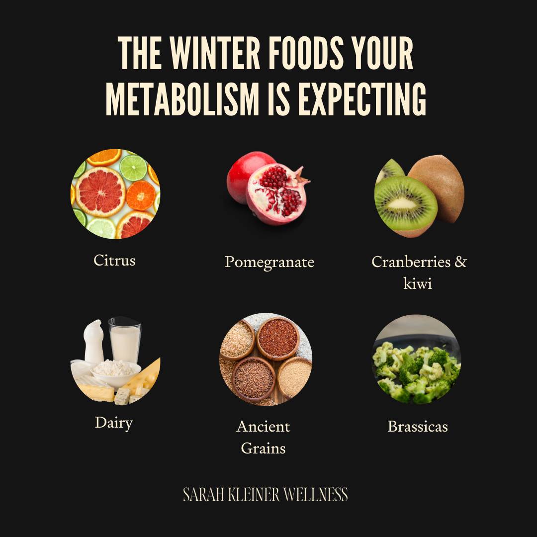 What does make sense is eating for your physiology and your actual light environment: This is why the foods that consistently support people in the winter are the ones that have always worked: root vegetables, winter squash, apples and pears, fermented foods, citrus, brassicas, ancient grains, hearty animal proteins, cold-water fish, butter, ghee, broth, warming spices.