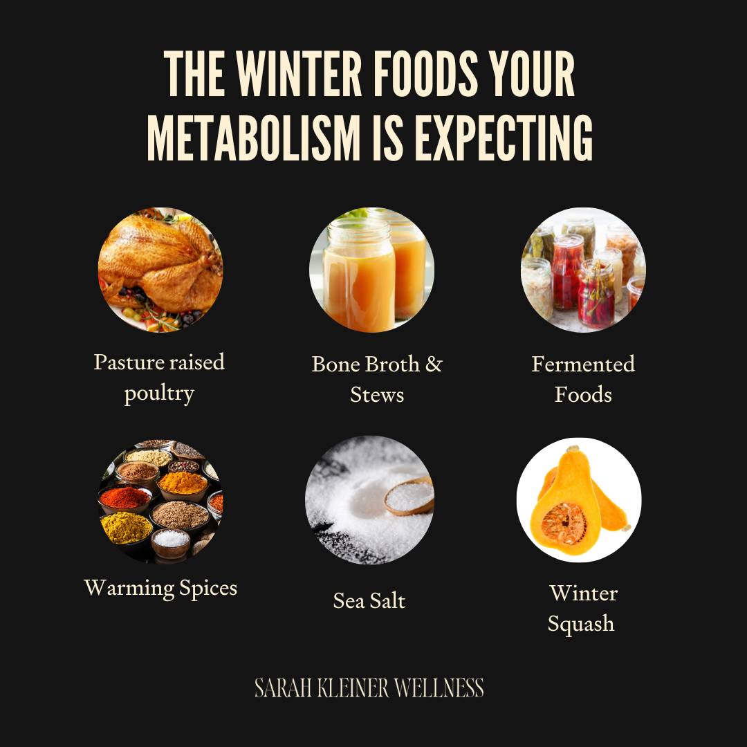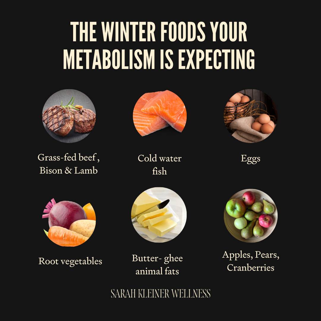 These are the foods that stabilize your metabolism when the sun is low and the mornings are dark. They’re the foods your mitochondria expect- not because they’re “seasonal” in the trendy sense, but because they’re biologically appropriate for low UV, cold temperatures, and higher stress load.