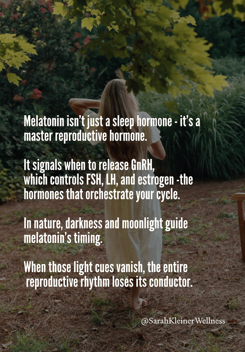 This doesn’t mean every woman was in the same phase at once. It means our population pattern, and the collective timing of ovulation and menstruation was once tuned to the same lunar rhythm. How all of this ties into Circadian Biology (why this isn't woo-woo):The average menstrual cycle lasts about 29.5 days, nearly identical to the lunar cycle’s 29.53 days (Cutler et al., Psychoneuroendocrinology, 1986). The very word “menstruation” comes from mene - Greek for moon. Light and darkness are not just visual experiences; they’re biological instructions.